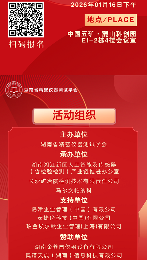 Meeting time: January 16, 2026, 14:00-17:40 Meeting location: Changsha Institute of Mining and Metallurgy Testing Technology Co., Ltd. (Conference Room, 4th Floor, Building E1-2) Welcome industry partners to visit and exchange ideas!